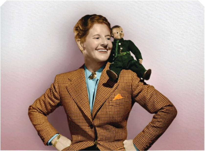 22:35 Now, I hope you remember that name Ruth Baldwin, so cruelly called ‘Fatty Baldwin’ by Johnston-Noad. There’s little record of Ruth, which is a tragedy because she was Joe’s longest relationship, and the girlfriend that Joe probably had the most intimate relationship with. (Which is why it’s unlikely that she was a secretary ferrying lovers to Joe at a boat race, as Johnston-Noad claimed.) At the end of 1925, Ruth and Joe took a trip to the Swiss Alps. For Christmas, Ruth gave Joe a doll--a stuffed leather manikin that stood just over a foot high and was manufactured by the famous toymaker Steiff. His limbs were jointed, so he could be turned and posed in lots of expressive ways, and the soft leather of his face was contoured. Joe named him Lord Tod Wadley, and would love him dearly for the rest of her life. She bought him little tailored suits on Savile Row, and even had his name added to the plaque at her home’s front door in Chelsea, implying that he was alive and could be called upon there. You might think this is a bit weird--Joe was an adult, and not a very feminine one, so on first glance it doesn’t seem like a doll would be a gift she would love. But as Summerscale points out, the novel Nightwood by Djuna Barnes might contextualize this gift for us. As the narrator says, “When a woman gives [a doll] to a woman, it’s the life they cannot have, it is their child, sacred and profane.” Lord Tod Wadley wasn’t just a doll--he was the child that Joe and Ruth would never be able to conceive.
